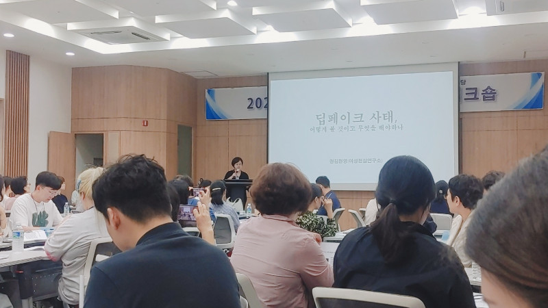 - 2025년 『폭력방지 업무 관계자 워크숍』 일 시 : 2025. 05. 21.(수) 13:30~17:30 장 소 : 치명자산성지 평화의 전당 피정의 집 2층 강의실 내 용 : 도·시·군 여성폭력피해자 지원담당, 경찰청 및 시·군 경찰서 담당, 상담소 및 보호시설 담당자 등이 참여하여 유공자 표창 및 “딥페이크사태, 어떻게 볼 것이고 무엇을 해야하나?” 라는 주제로 여성현실연구소 권김현영 박사님께서 진단부터 해법까지 특강을 하였고, 유관기관들과 딥페이크