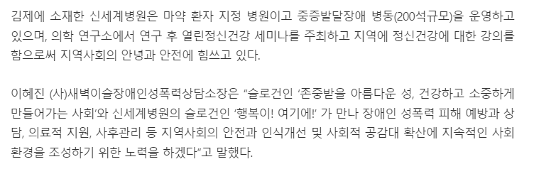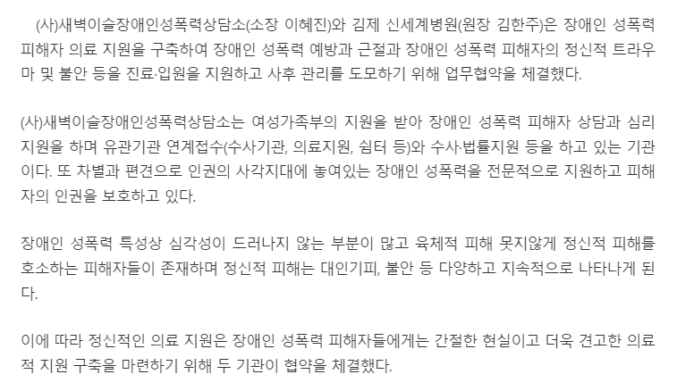 - 장애인들의 전인건강과 안전한 삶을 위한 협 구축