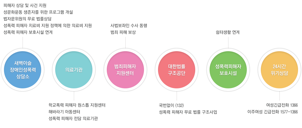 | 사건해결 방법 점검 | 피해자가 원하는 해결방법을 논의, 여건에 맞는 방법은 어떤 것이 있는지 상담. |